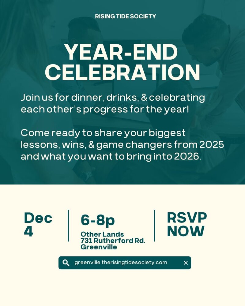 Rising Tide Society is a nonprofit organization led by a board of directors and supported by more than 45 volunteers who are all passionate about supporting small business owners and creative entrepreneurs. The Greenville, SC Chapter is just one of many around the globe, and we are so glad you're here!